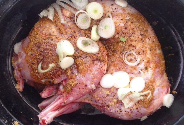 In the crock pot, always use the Low setting. A mild simmer or just barely bubbling liquid is an indication you’re on the right track. If you’ve got liquid in the crock pot with the rabbit, you can continue to let it cook on low heat for several hours and it will continue to tenderize.